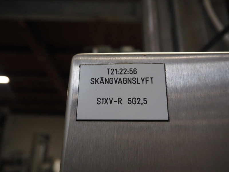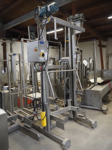 KÅ-GE Lyften mobile lifter for 200 liter meat bins, type: SKV200 M1PKHRT, number: 4559, lifting height: 1580 mm, total dimensions: 1420 mm x 1360 mm x 2600 mm.