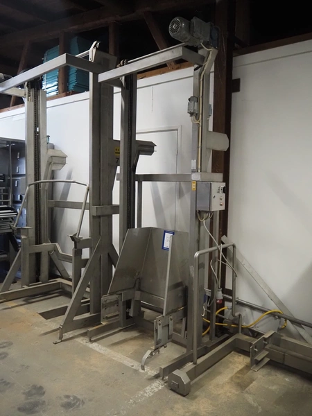 KG Lyften lifter for 200 liter meat bins, type: SKV 200 MKR, number: 5587, lifting height: 2000 mm, total dimensions: 1260 mm x 1050 mm x 2980 mm.