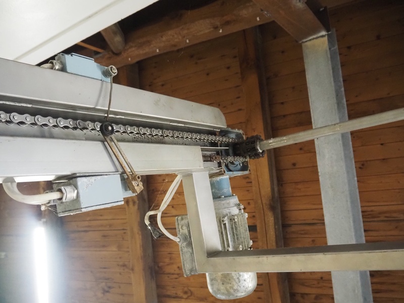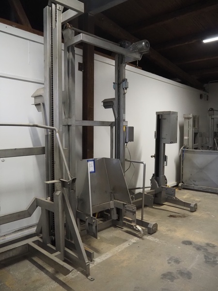 KG Lyften lifter for 200 liter meat bins, type: SKV 200 MKR, number: 5587, lifting height: 2000 mm, total dimensions: 1260 mm x 1050 mm x 2980 mm.