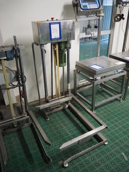 Lifter for crates, lifting height 930 mm, dimensions crates: 750 mm x 600 mm, total dimensions: 1200 mm x 650 mm x 1350 mm.