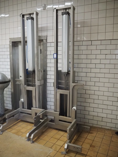 Lifter for meat bins, lifting height: 1000 mm, total dimensions: 1050 mm x 900 mm x 2650 mm.