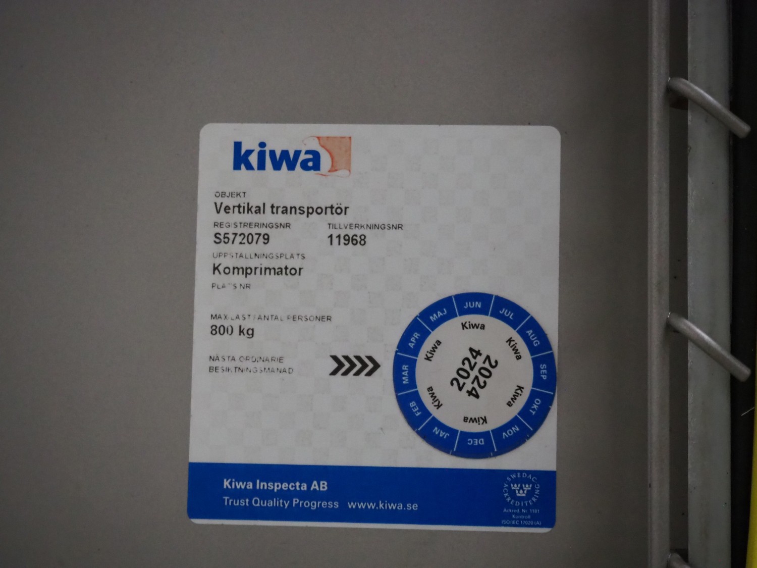 Nimo KG lifter for pallet boxes, type: SK 800 MK 2, serial number: 11968, year of construction: 2014, 400 V, 3 Ph, 50 Hz, 3.55 A, maximum capacity: 800 kg, clearance: 1250 mm x 1000 mm x 900 mm, lifting height: 2070 mm, total dimensions: 2050 mm x 1750 mm x 3450 mm.