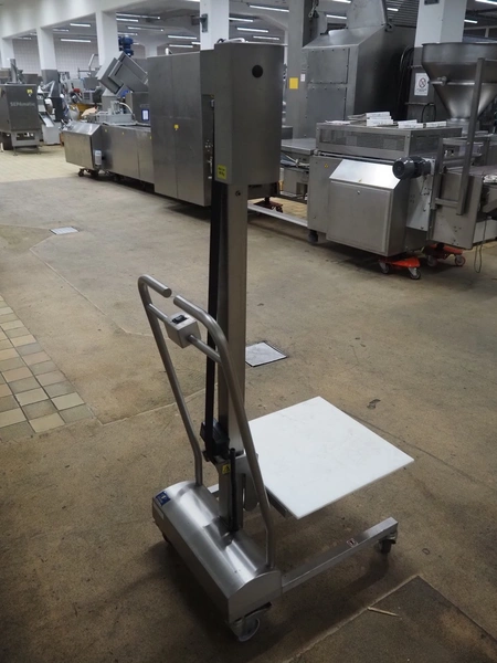 Svenema AB mobile lifter, product: Lyftvagn MIDI, model: 90 004, serial number: 30502-01, year of construction: 19/09/2005, 2x 12 V, 6.5 Ah, maximum capacity: 80 kg, weight: 39 kg, lifting height: 1530 mm, dimensions platform: 500 mm x 500 mm, total dimensions: 740 mm x 500 mm x 1650 mm.
