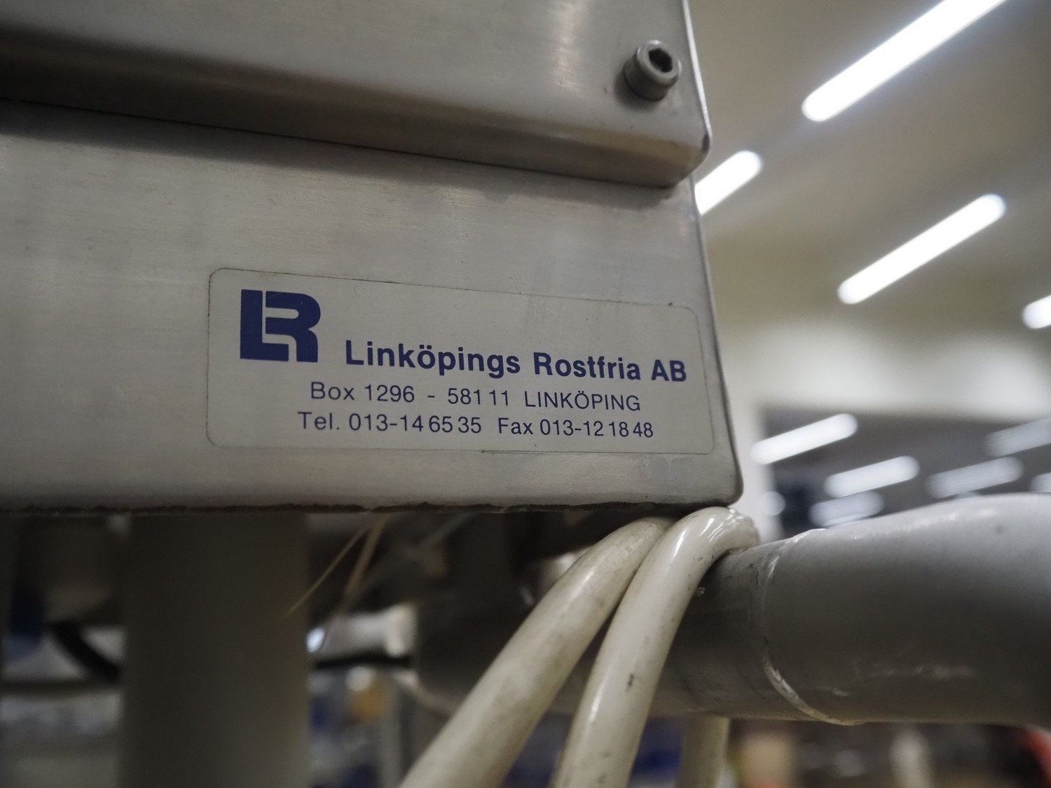 Linköpings Rostfria AB lifter, lifting height: 1150 mm, platform: 375 mm x 580 mm, total dimensions: 1260 mm x 550 mm x 1540 mm.