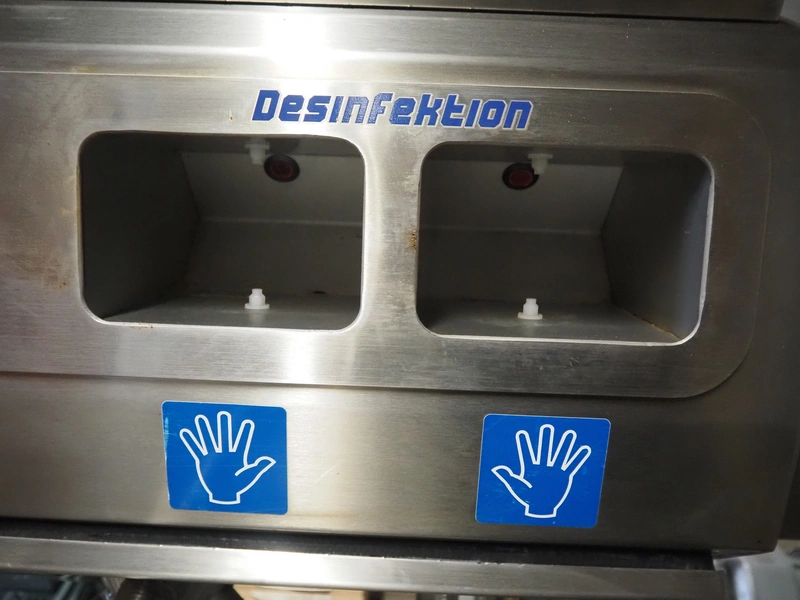 Kohlhoff hygiene station with tourniquet, sole cleaner and hand disinfection unit, type: DLSO-HD 1100-R+EK-800-R, machine number: 819935-20, year of construction: 03/2017, 400 V, 3 Ph, 0.8 kW, brush length: (2x) 680 mm, total dimensions: 1350 mm x 1150 mm x 1750 mm.