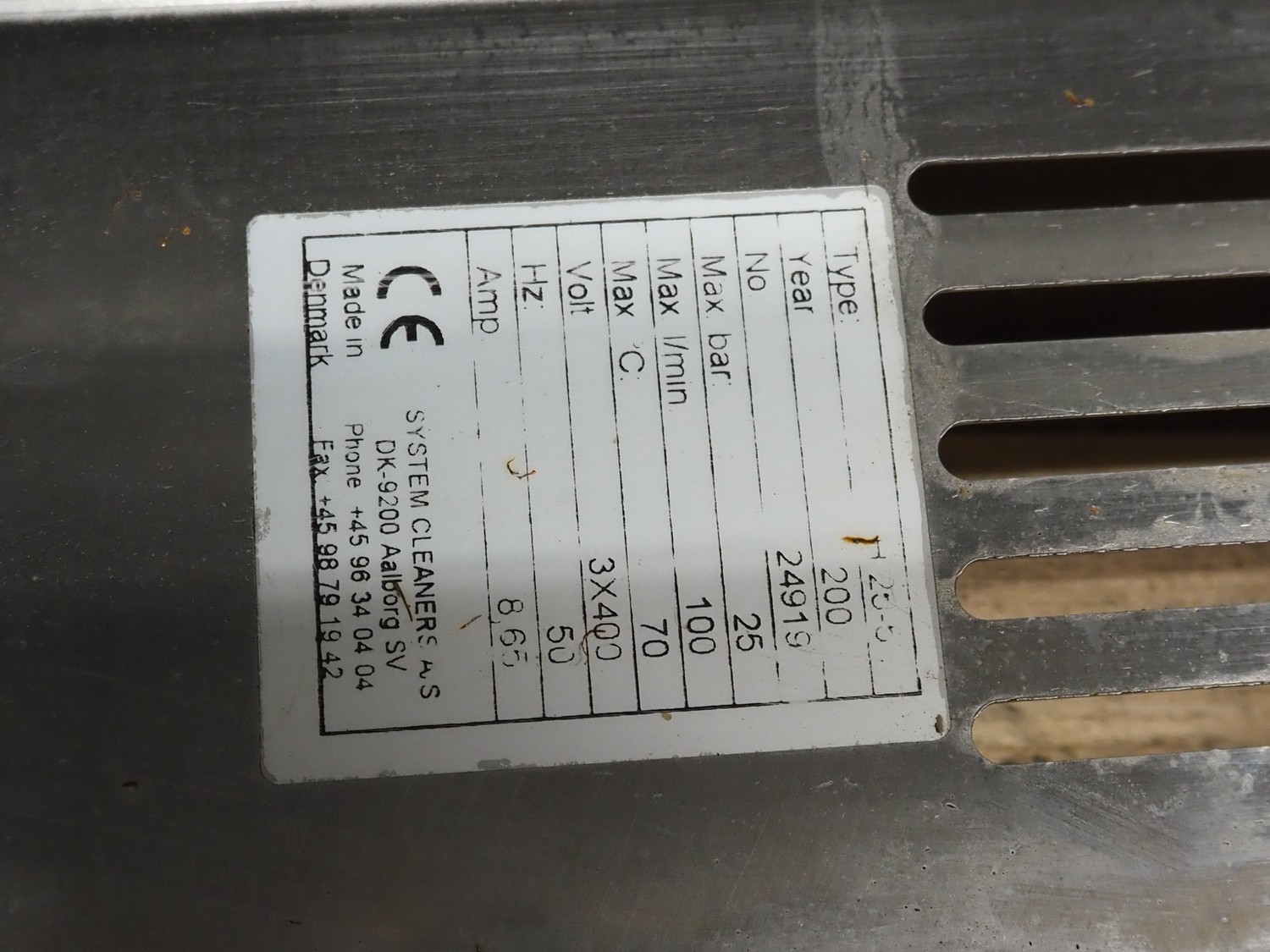 System Cleaners A/S foam mixing unit, type: H-25-5, number: 24919, 400 V, 3 Ph, 50 Hz, 8.65 A, maximum bar: 25, maximum liter per minute: 100, maximum temperature: 70°C, dimensions: 1600 mm x 650 mm x 500 mm.