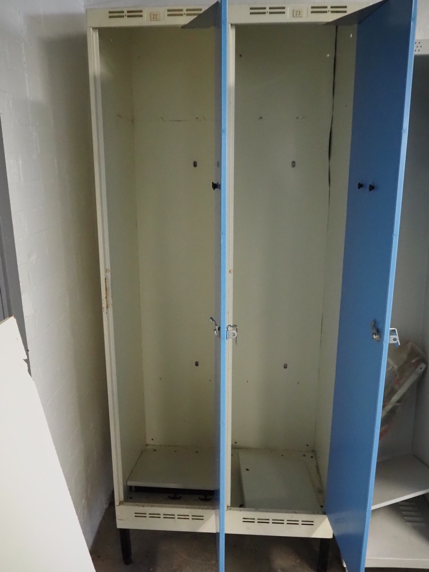 Steel 2-doors locker, inside dimensions (2x): 400 mm x 520 mm x 1800 mm, total dimensions: 800 mm x 550 mm x 2100 mm.