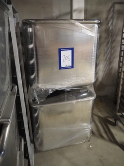 2 s/s tubs, inside dimensions: (2x) 1090 mm x 690 mm x 650 mm, total dimensions: (2x) 1150 mm x 750 mm x 800 mm. Never used.2 bidsLot is closed -