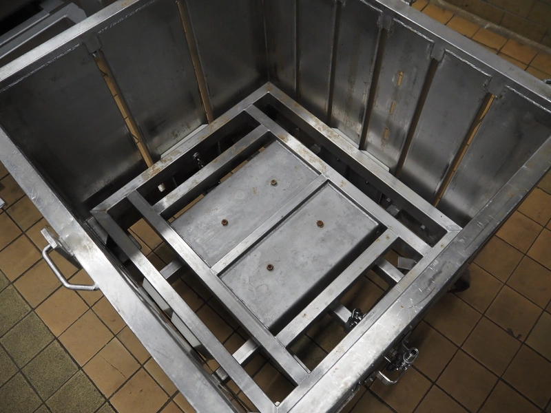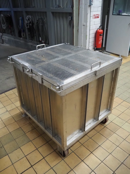 Eberhardt GmbH mobile ham press, type: II GroB, year of construction: 2002, inside dimensions: 800 mm x 900 mm x 600 mm, total dimensions: 950 mm x 1000 mm x 1000 mm.