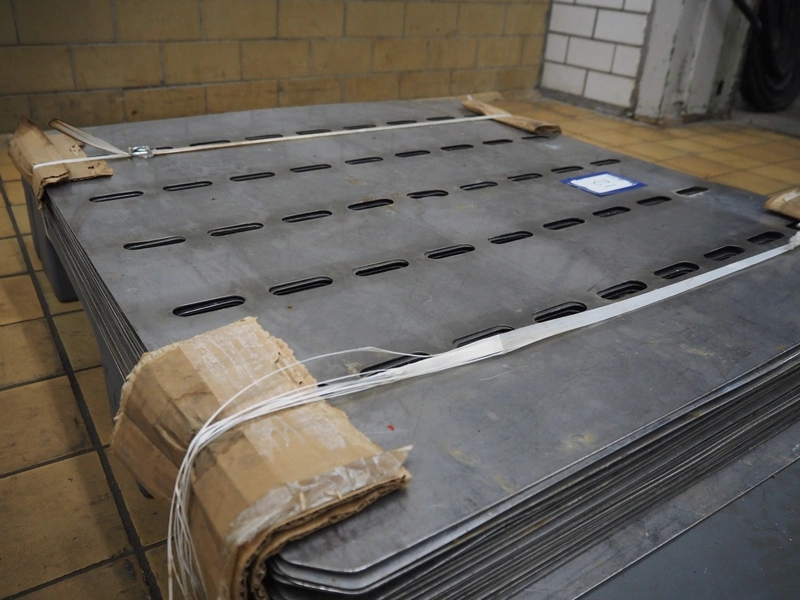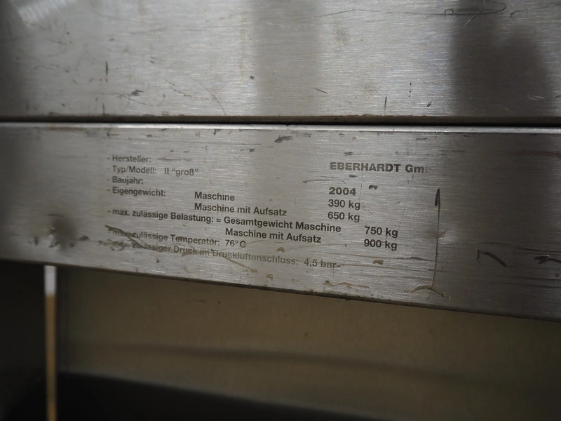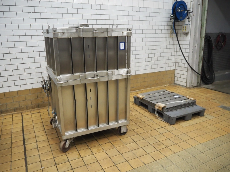 Eberhardt GmbH mobile ham press, type: II GroB, year of construction: 2004, inside dimensions: 900 mm x 850 mm x 1250 mm, total dimensions: 980 mm x 930 mm x 1560 mm. Including pallet with plates, dimensions each plate: 800 mm x 880 mm.