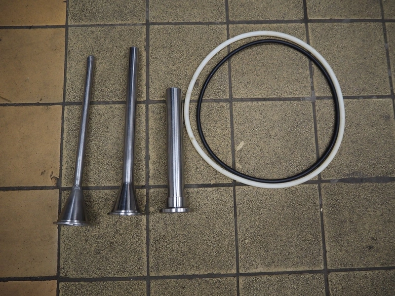 Fatosa piston filler, type: E-25, number: 3156, year of construction: 05/12, 400 V, 3 Ph, 50 Hz, 3.1 A, 1.1 kW, dimensions: 510 mm x 360 mm x 1200 mm.