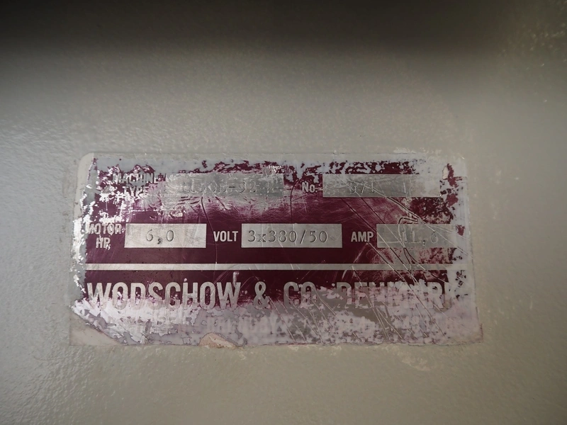 Wodschow & Co. mixer, type: 2150-S, number: 671, 380 V, 3 Ph, 50 Hz, 11.6 A, s/s bowl, inside dimensions: Ø 600 mm x 800 mm, total dimensions: 1300 mm x 700 mm x 1750 mm.