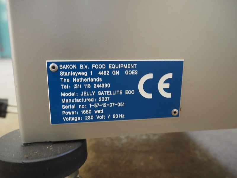 Bakon B.V. Food Equipment mobile jelly machine, model: Jelly Satellite Eco, serial number: 1-57-12-07-051, year of construction: 2007, 230 V, 50 Hz, 1650 W, dimensions: 620 mm x 450 mm x 1370 mm.