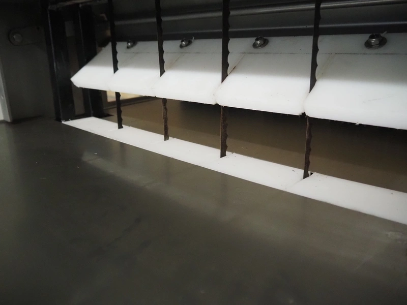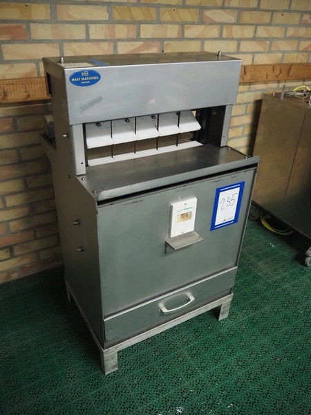 Maho Machinefabriek Holtkamp BV bread slicer, type: n 500 Spec, machine number: 980611, 380 V, 4 knives, distance between knives: 100 mm, working width: 510 mm, total dimensions: 750 mm x 700 mm x 1200 mm.