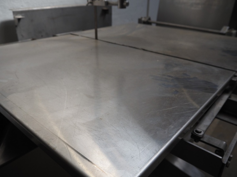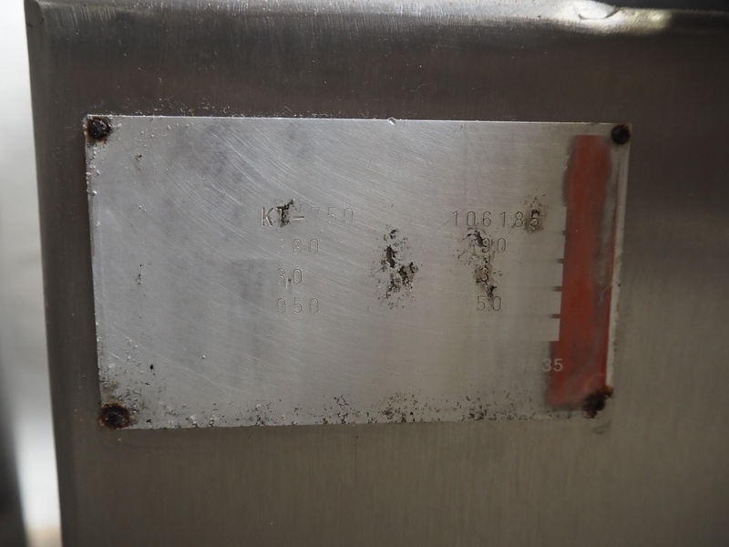 Koneteollisuus OY bandsaw, type: KT-750, number: 106185, 380 V, 3 Ph, 50 Hz, 9.0 A, 3.0 kW, table dimensions: 1300 mm x 960 mm, total dimensions: 1800 mm x 1450 mm x 2300 mm.