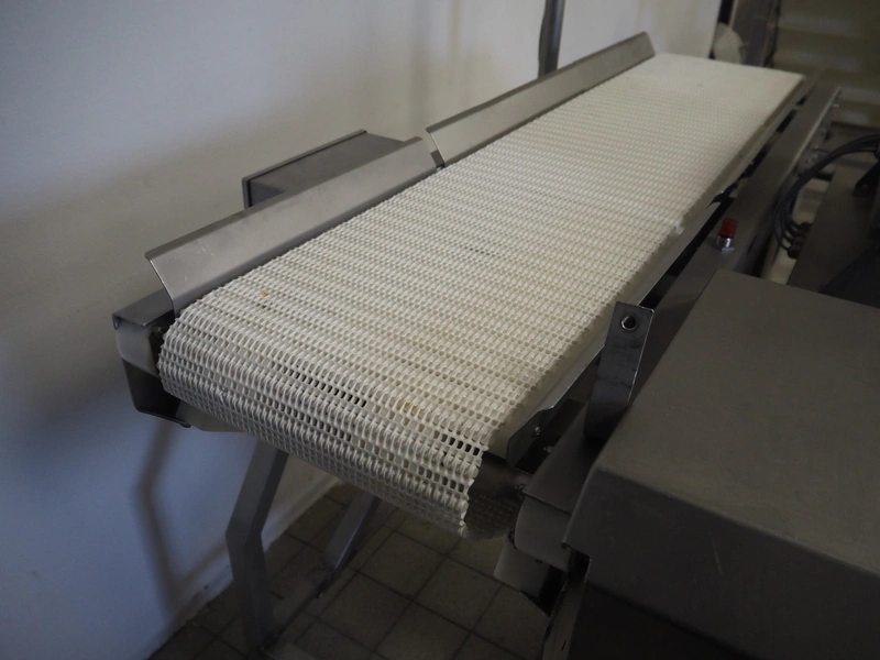 Marel checkweigher type: DWU 1460/300, serial number: A010895, year of construction: 2002, plastic mesh belt, belt width: 300 mm, total dimensions: 1450 mm x 950 mm x 1850 mm.