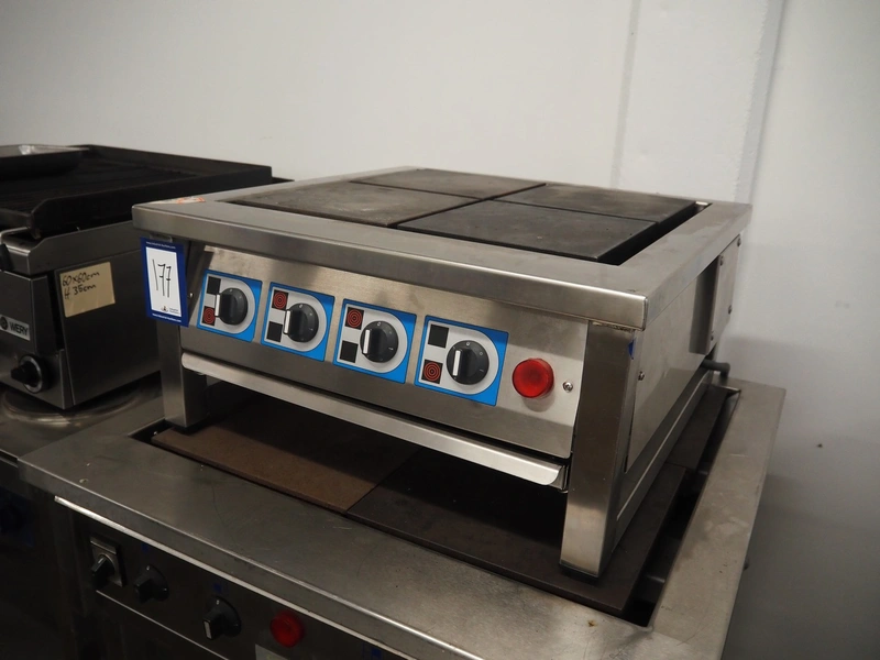 Stove, 4 pits, dimensions pits: (4x) 220 mm x 220 mm, total dimensions: 600 mm x 600 mm x 300 mm.