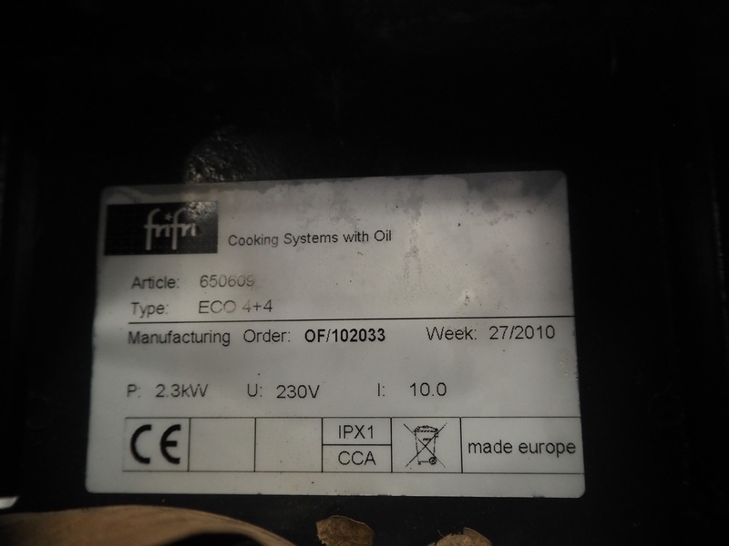 Stayhot double deep fryer, model: Eco 4 + 4, 230 V, minimum temperature : 100 °C, maximum temperature: 190°C, inside dimensions (2x): 295 mm x 155 mm x 180 mm, total dimensions: 355 mm x 380 mm x 300 mm.