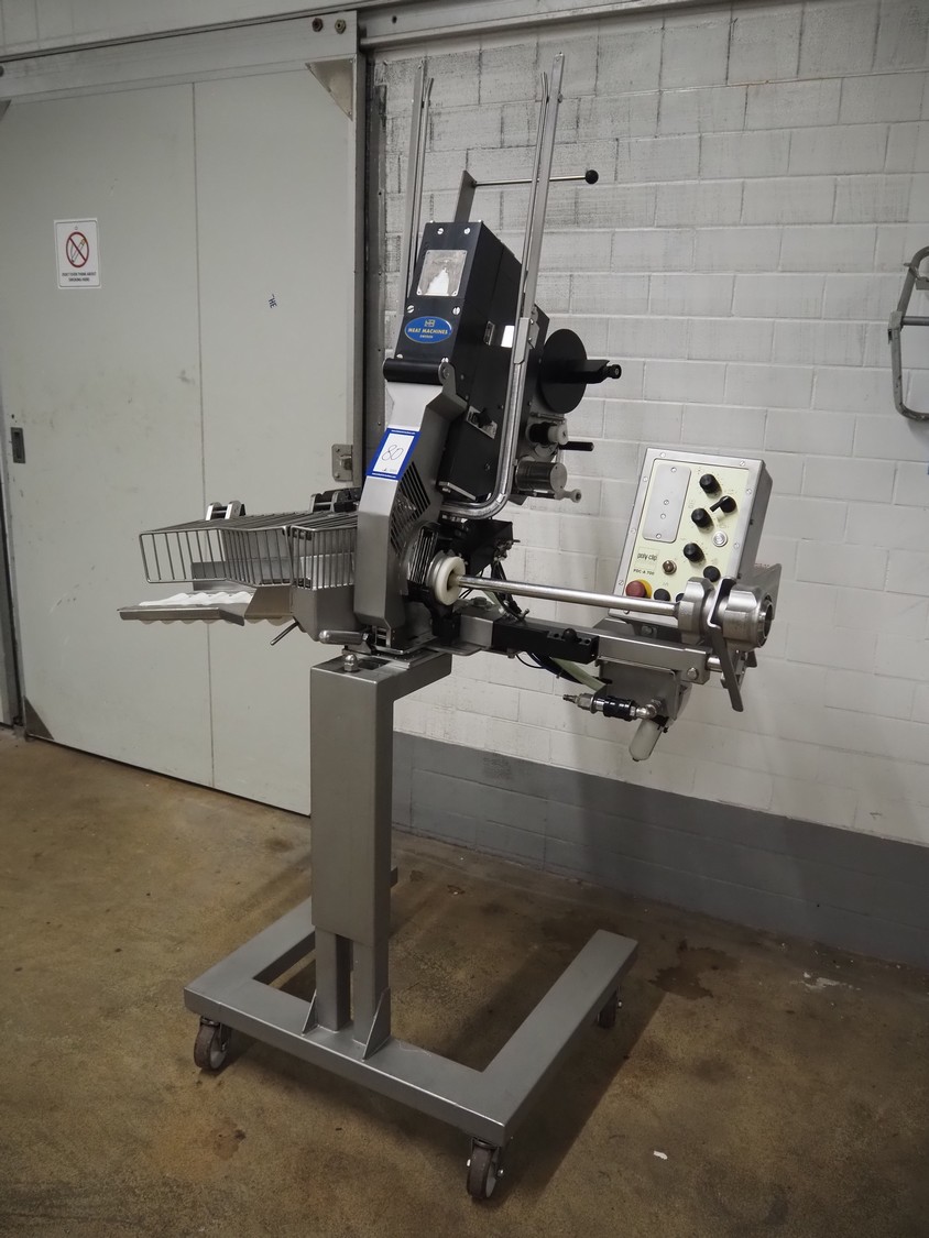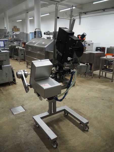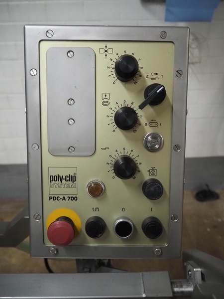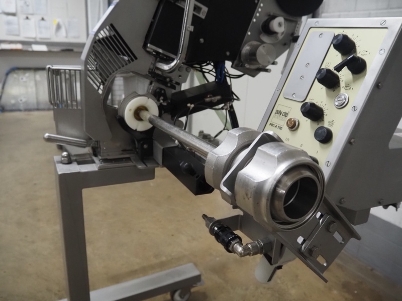 Poly-clip System GmbH mobile double clipper, type: PDC-A 700, number: 105, year of construction: 2001, dimensions: 1350 mm x 800 mm x 1950 mm.