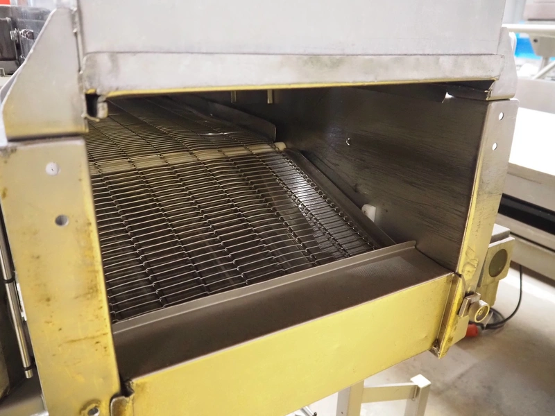 S/s mobile breading machine, s/s mesh belt, belt width: 400 mm, clearance: 420 mm x 50 mm, total dimensions: 2200 mm x 1100 mm x 1700 mm.