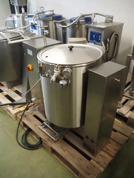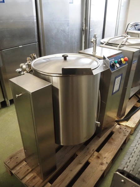 Metos cooking vessel, type: VIKING 60E, serial number: 10911902250020, year of construction: 2019, 400/230 V, 3 Ph, 50 Hz, 15/16 A, 10.5 kW, volume: 60 liter, total dimensions: 700 mm x 1080 mm x 1080 mm.