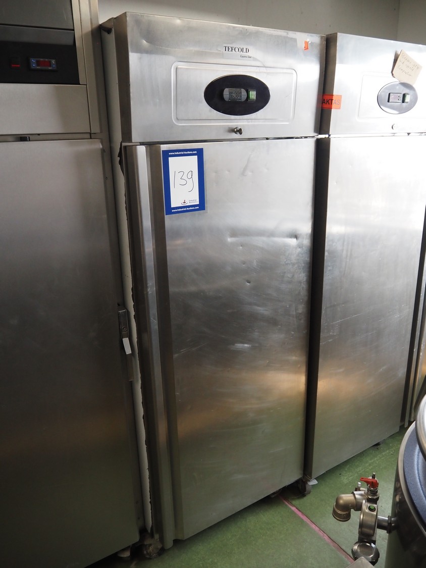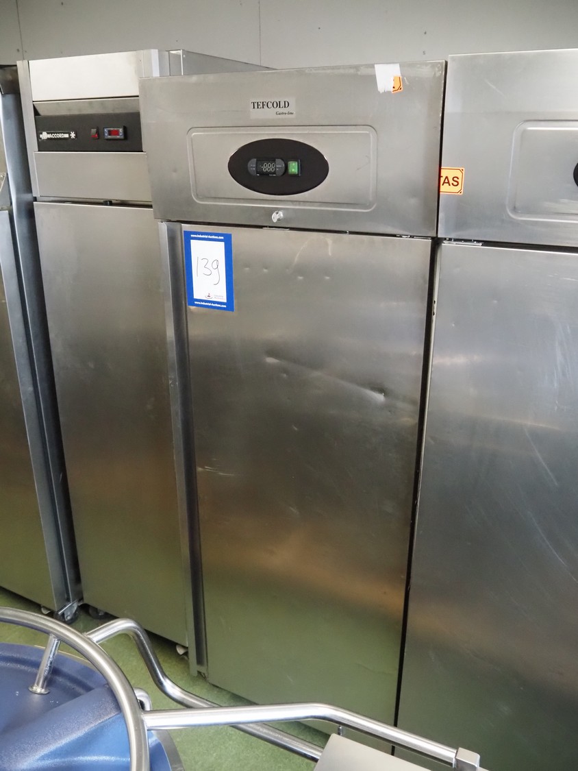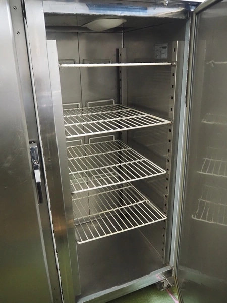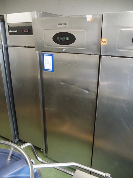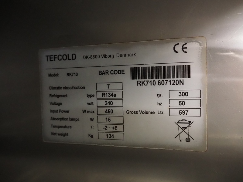 Tefcold mobile refrigerator, model: RF710, 240 V, 50 Hz, 750 W, volume: 597 liter, refrigerant: R404A, 460 gram, netto weight: 138 kg, 4 adjustable floors, floor dimensions: 650 mm x 530 mm, total dimensions: 850 mm x 750 mm x 2000 mm.