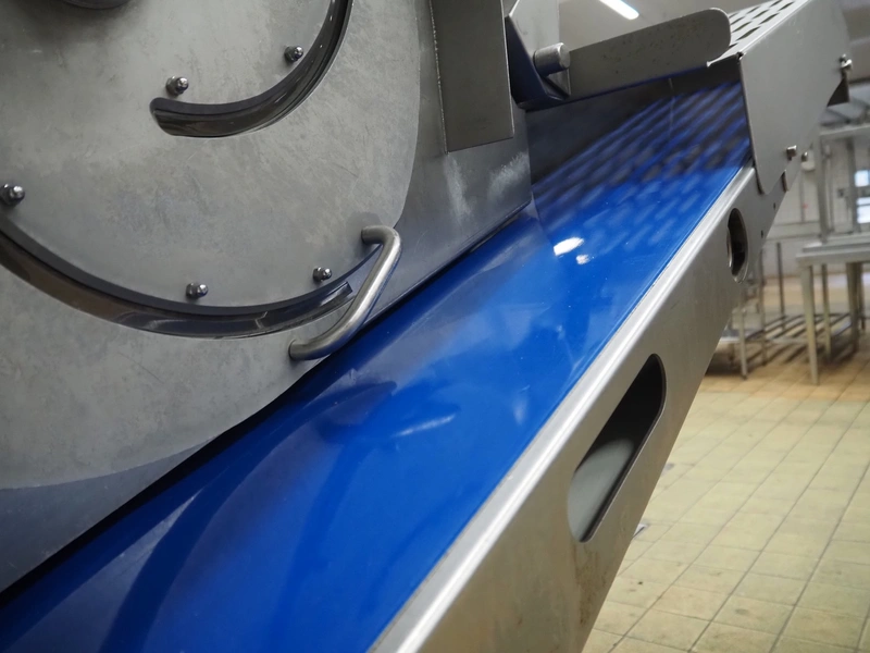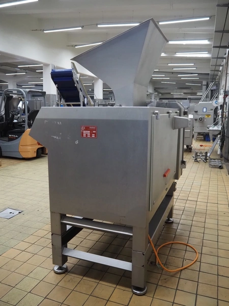 Holac dicer, type: Cubixx 120 LP, serial number: 242-00-17, year of construction: 2017, 400 V, 60 Hz, 25 A, 10 kW, chamber dimensions: 120 mm x 120 mm, plastic outfeed belt, belt width: 290 mm, total dimensions: 1850 mm x 1600 mm x 2200 mm.