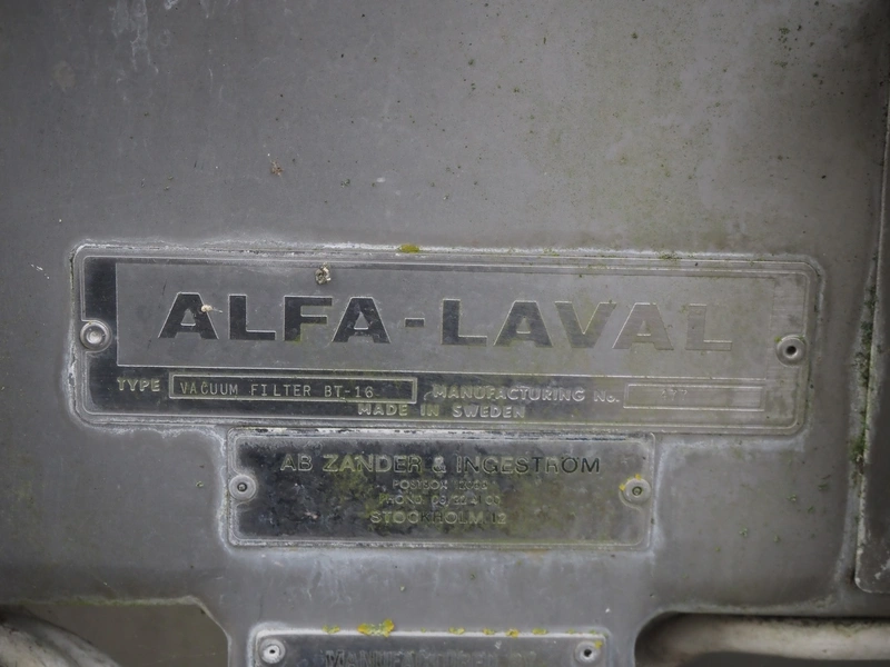 Alfa Laval vacuum filter, type: vacuum filter BT-16, manufacturing number: 477, dimensions drum: 2000 mm x 2600 mm x 2600 mm, total dimensions: 3200 mm x 3100 mm x 2900 mm.