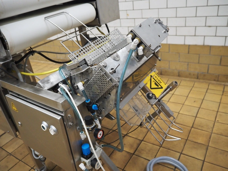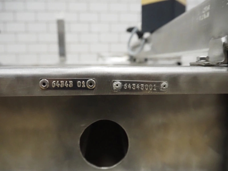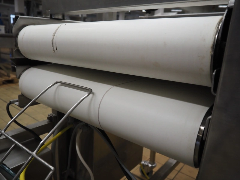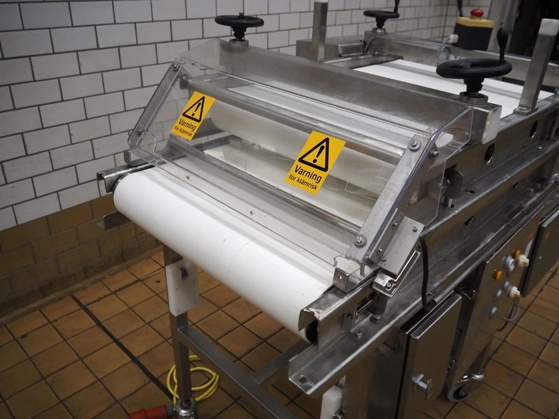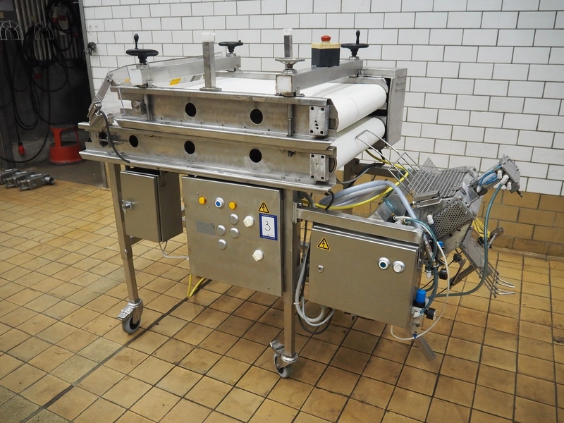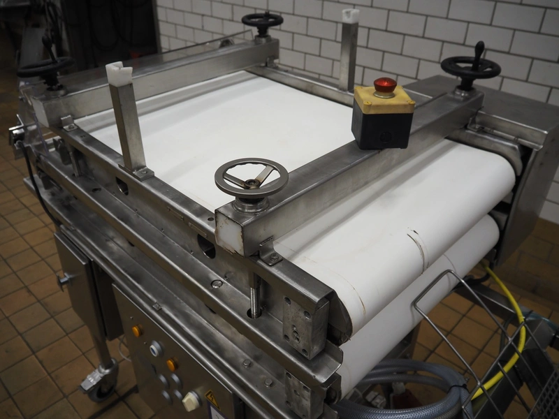 Mobile flattener, plastic belt, belt width: 570 mm, total dimensions: 1900 mm x 920 mm x 1450 mm.