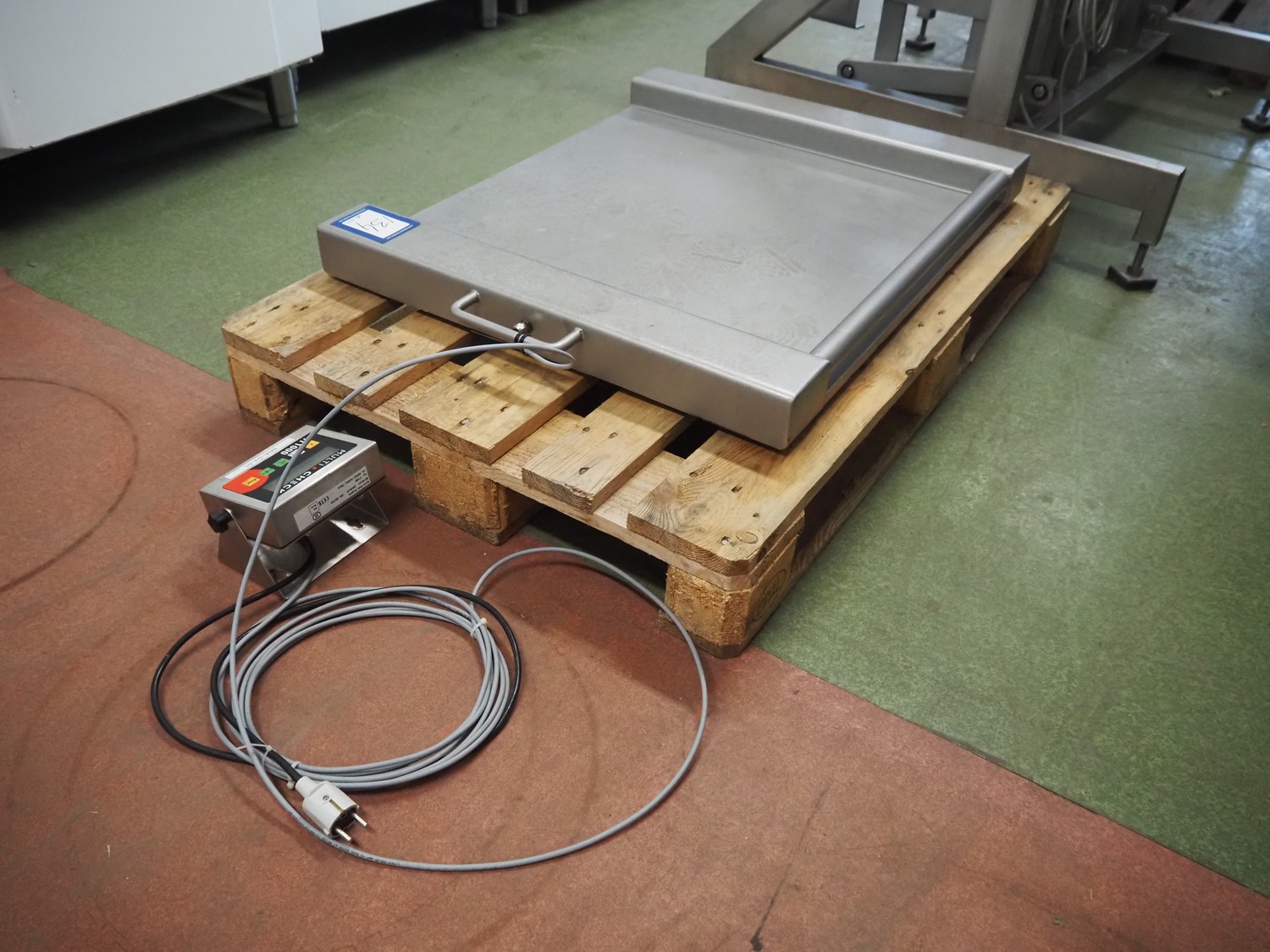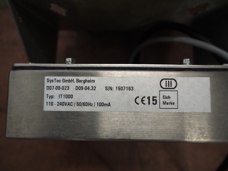 SysTec GmbH floor weighing scale, type: IT1000, serial number: 1507163, 110-240 V, 50/60 Hz, 100 mA, dimensions: 880 mm x 730 mm x 800 mm.