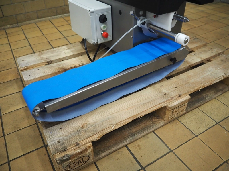 Hamburger forming machine, diameter form: Ø 90 mm, plastic belt, belt width: 145 mm, total dimensions: 950 mm x 780 mm x 790 mm. Including extra form, diameter form: 100 mm.