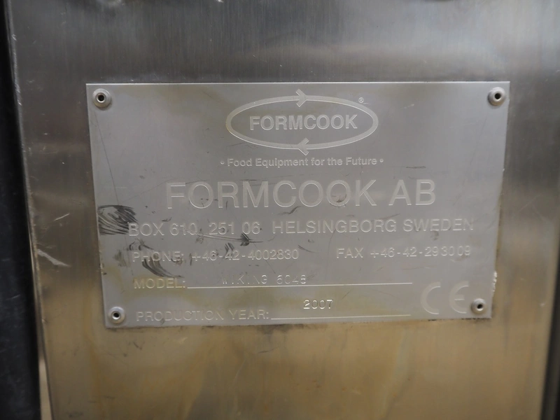 Formcook AB mobile forming machine, model: WIKING 6048, year of construction: 2007, 4 screws, dyes: (6x) 65 mm, total dimensions: 1680 mm x 1100 mm x 2300 mm. Without dye.