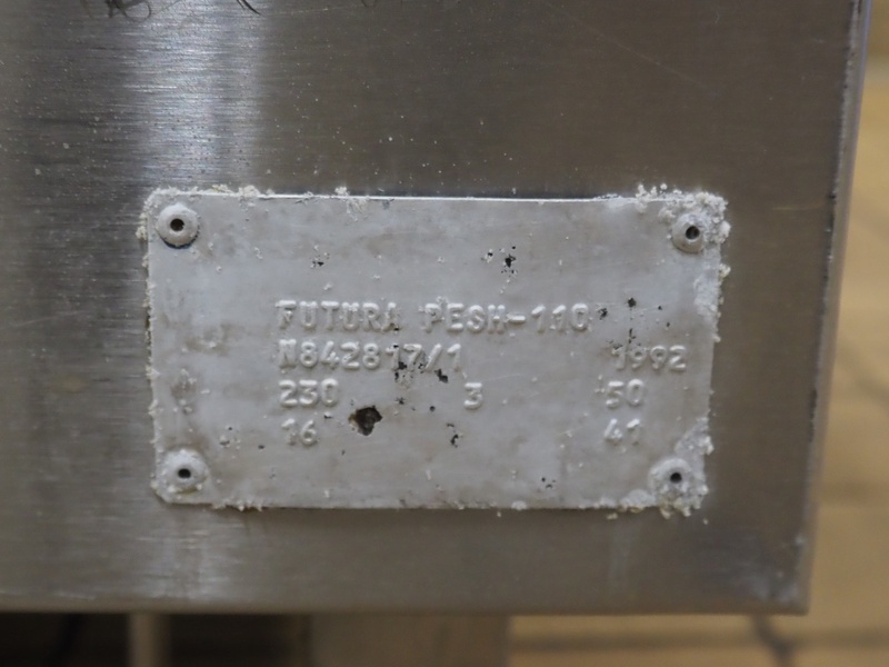Metos roasting pan, model: Futura Pesh-110, number: 842817/1, year of construction: 1992, 230 V, 3 Ph, 50 Hz, inside dimensions: 1040 mm x 580 mm x 85 mm, total dimensions: 1100 mm x 800 mm x 1000 mm.