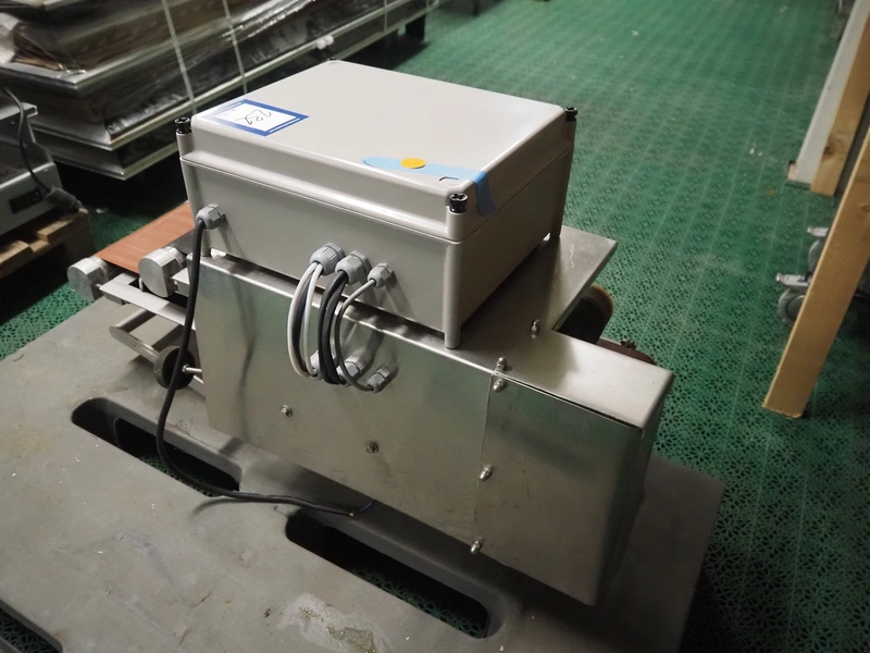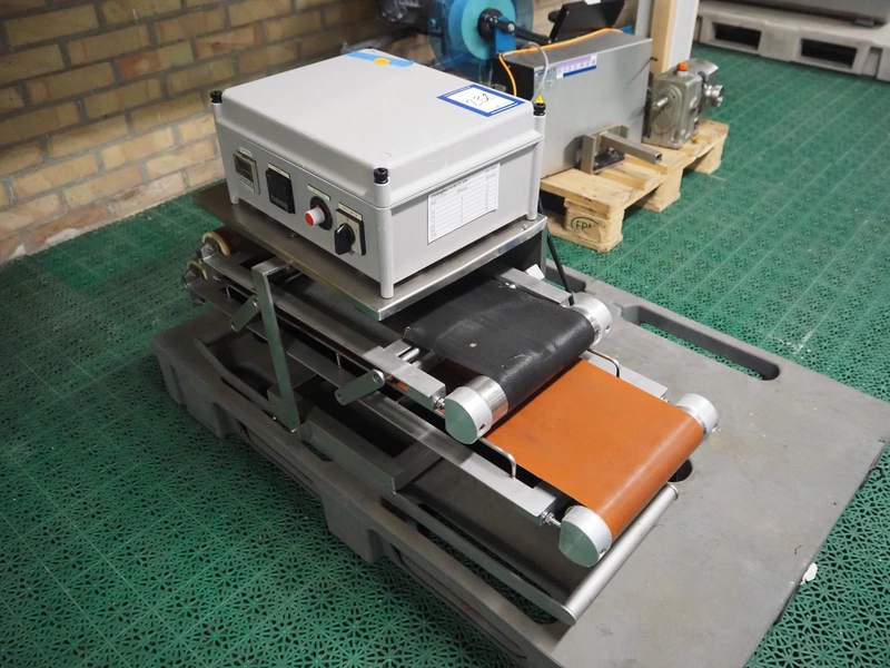 Teflon belt grill, upper belt width : 185 mm, lower belt width: 220 mm, total dimensions: 950 mm x 400 mm x 540 mm.