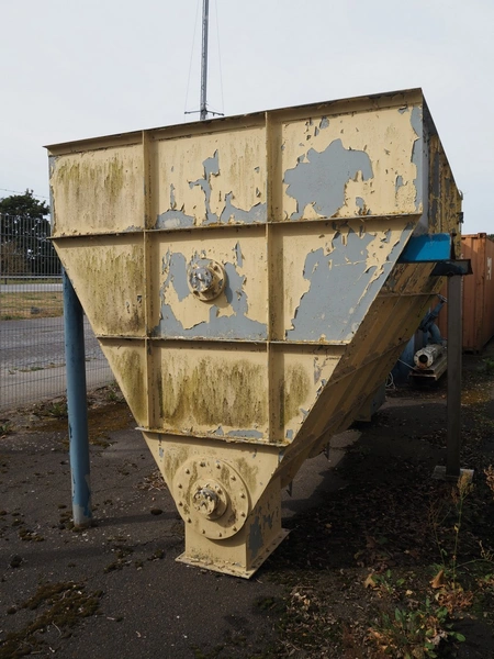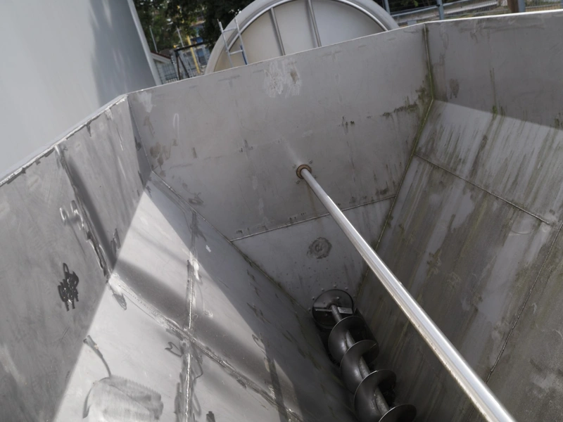 Ponndorf Maschinenfabrik GmbH s/s hopper with s/s auger, type: 315/8, number: 17084, year of construction: 1985, dimensions hopper: 3000 mm x 2100 mm x 2350 mm, with 2 SEW Eurodrive motors, (2x) 3.0 kW, total dimensions: 4150 mm x 2350 mm x 2350 mm.