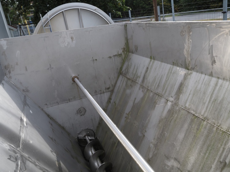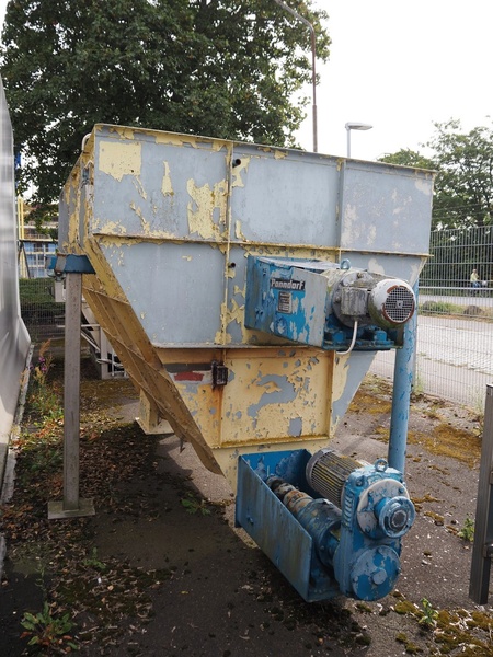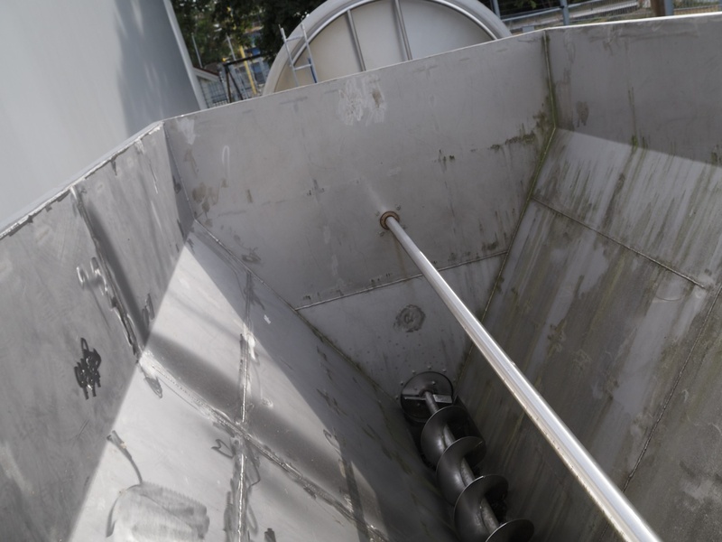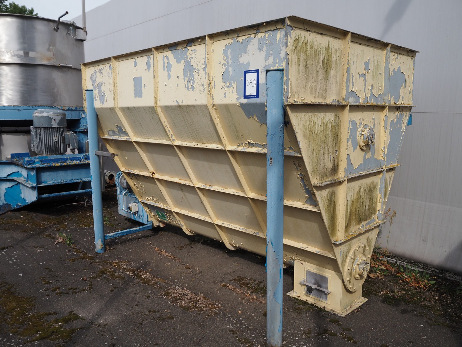 Ponndorf Maschinenfabrik GmbH s/s hopper with s/s auger, type: 315/8, number: 17084, year of construction: 1985, dimensions hopper: 3000 mm x 2100 mm x 2350 mm, with 2 SEW Eurodrive motors, (2x) 3.0 kW, total dimensions: 4150 mm x 2350 mm x 2350 mm.
