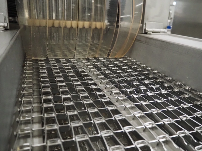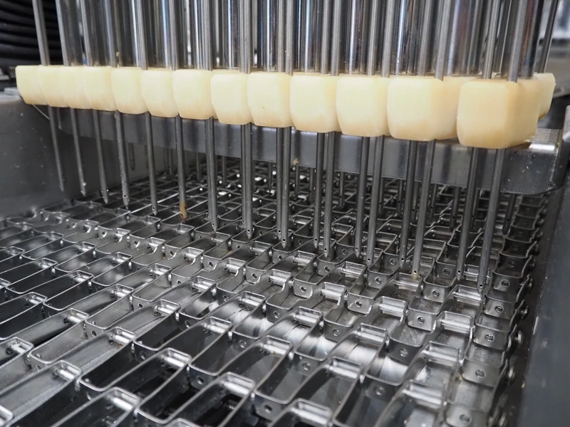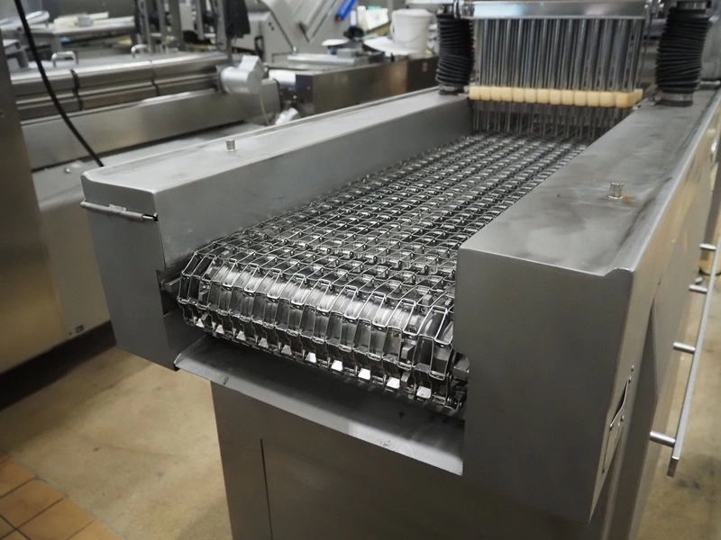 Garos injector, type: FGM 52, serial number: 569027, 52 needles, s/s mesh belt, belt width: 340 mm, total dimensions: 2100 mm x 700 mm x 2050 mm.
