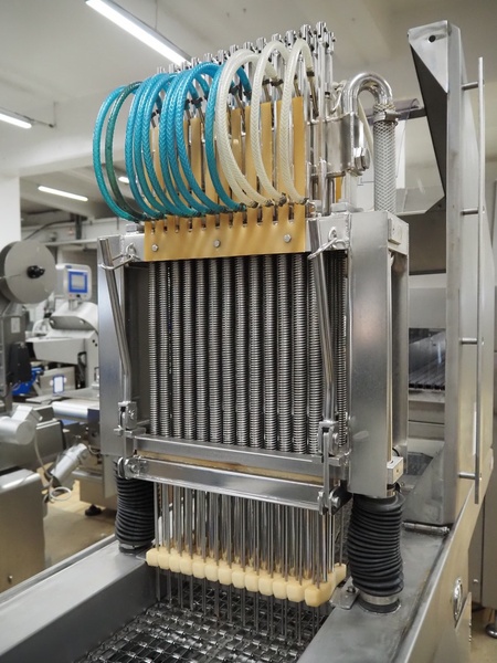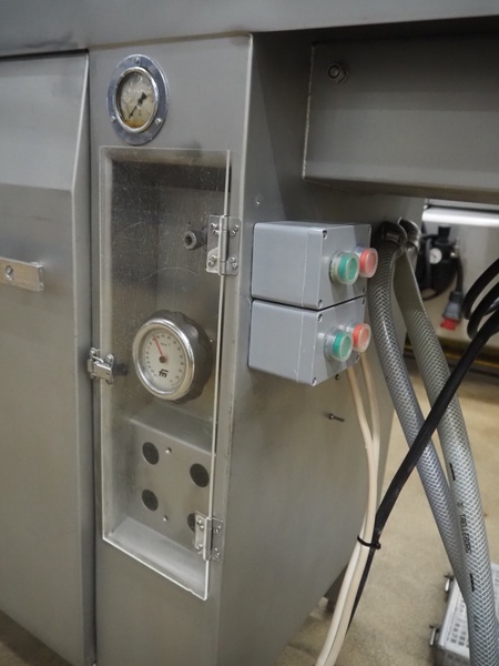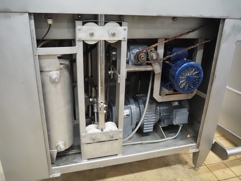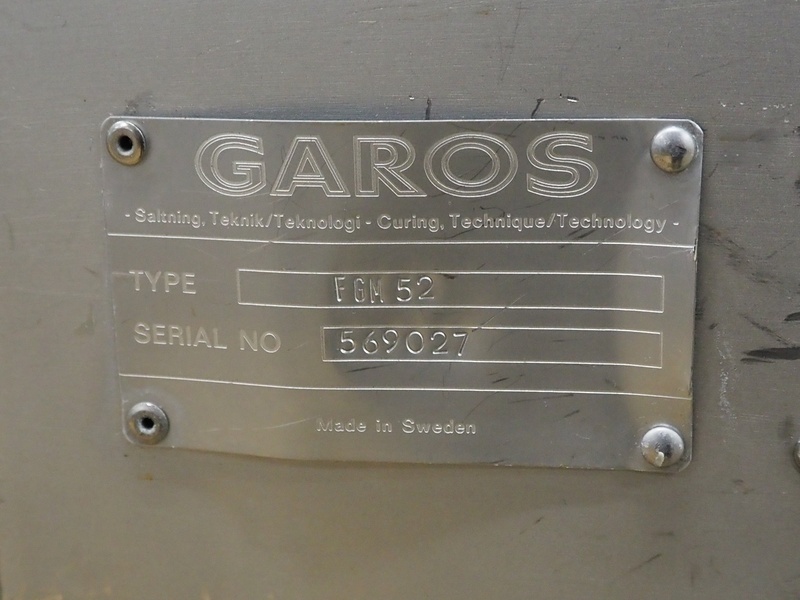 Garos injector, type: FGM 52, serial number: 569027, 52 needles, s/s mesh belt, belt width: 340 mm, total dimensions: 2100 mm x 700 mm x 2050 mm.