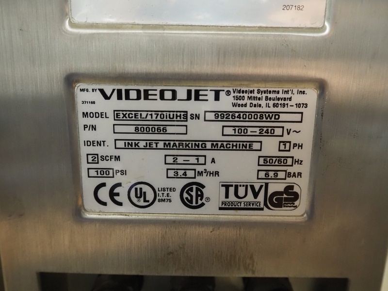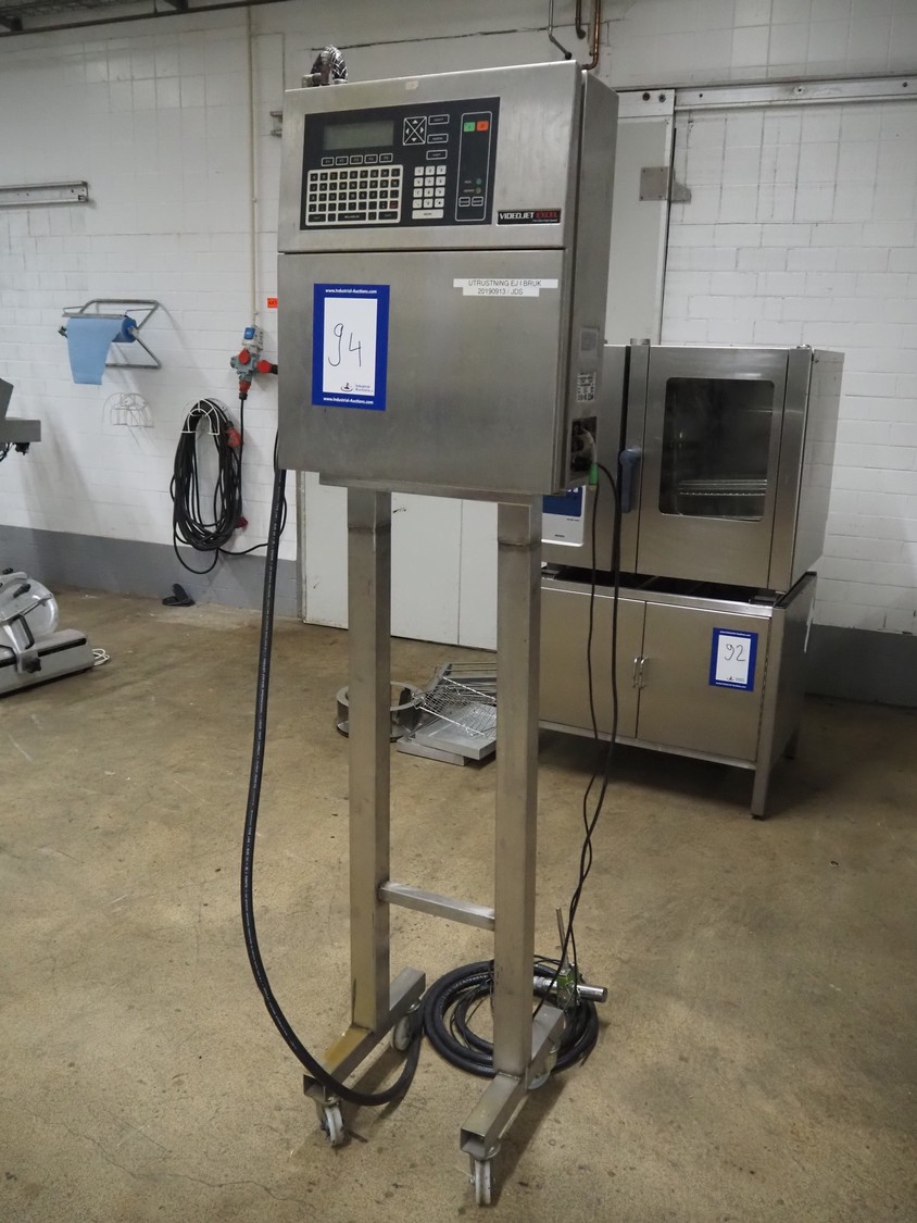 Videojet mobile inkjet printer, model: EXCEL/170iUHS, serial number: 992640008WD, 100-240 V, 1 Ph, 50/60 Hz, 2-1 A, dimensions: 500 mm x 200 mm x 1900 mm.