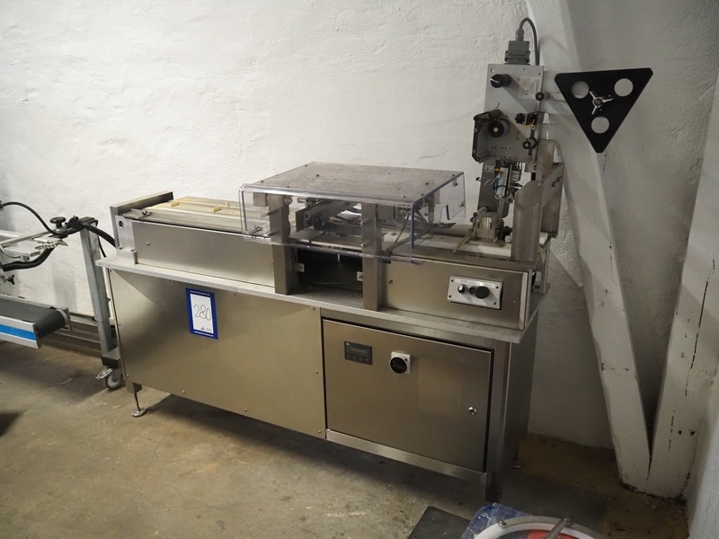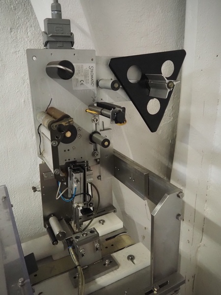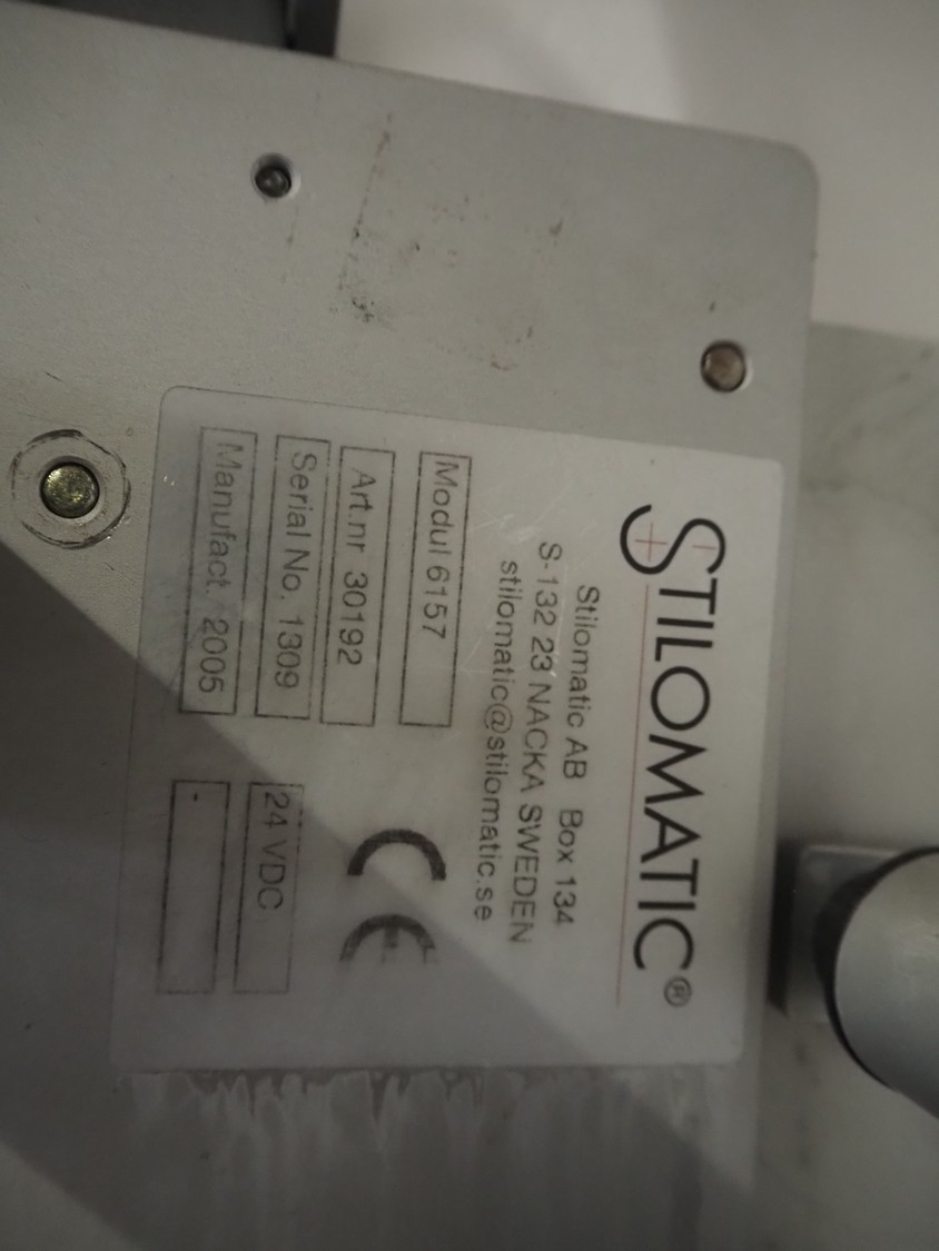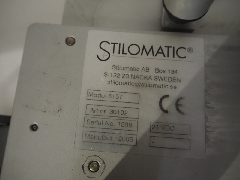 Stilomatic labeller, type: Modul 6157, serial number: 1309, year of construction: 2005, plastic belt, belt width: 50 mm, total dimensions: 1770 mm x 500 mm x 1600 mm.