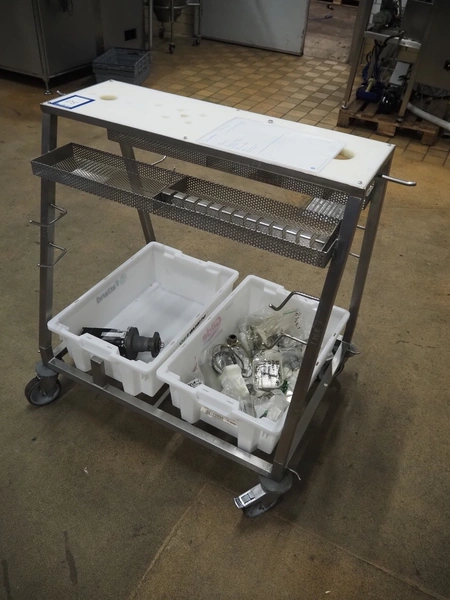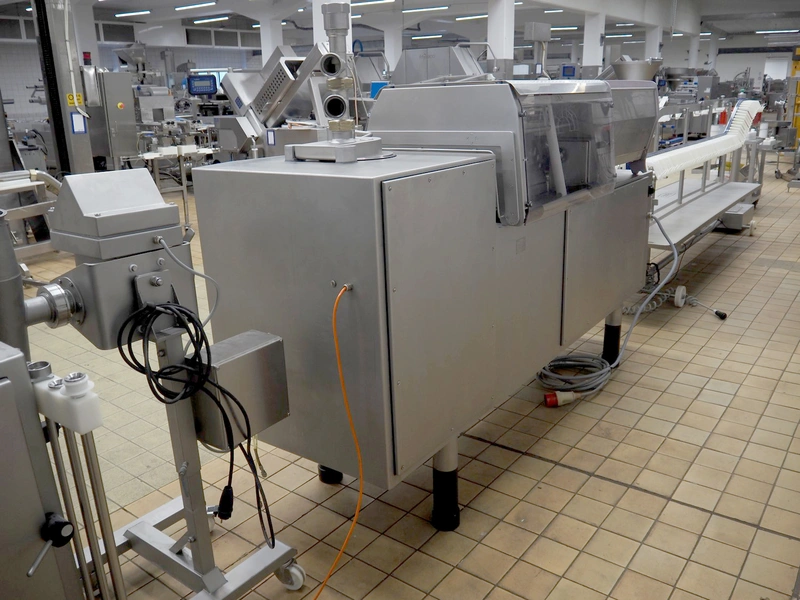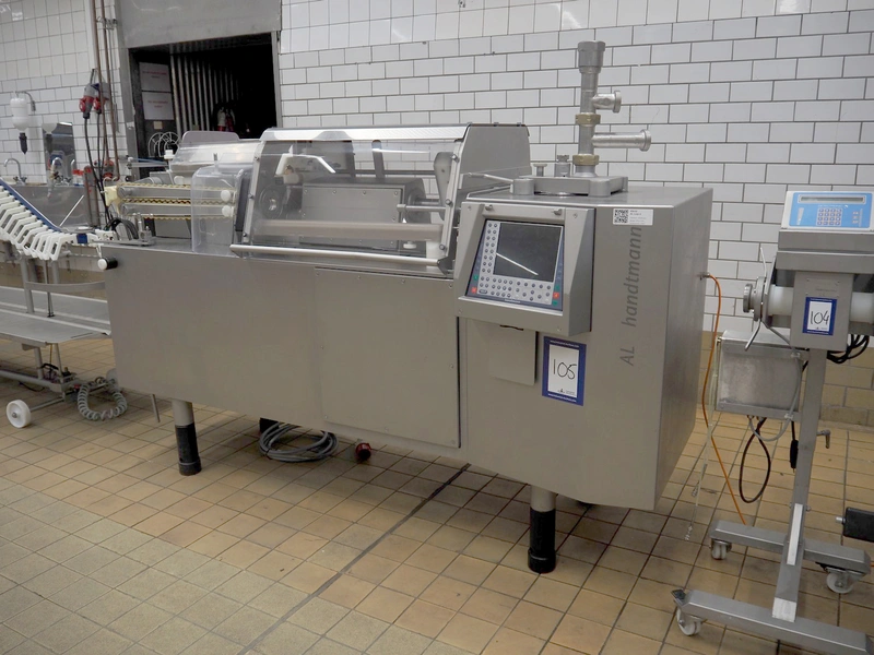 Handtmann mobile portioning and linking machine, type: 242-01, number: 501, year of construction: 2004, 400 V, 3 Ph, 50 Hz, 15 A, 10 kW, dimensions: 2600 mm x 880 mm x 1780 mm.
