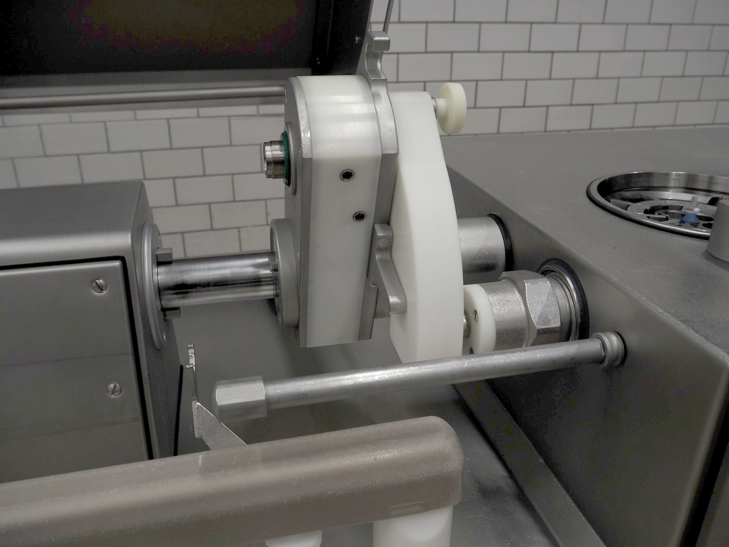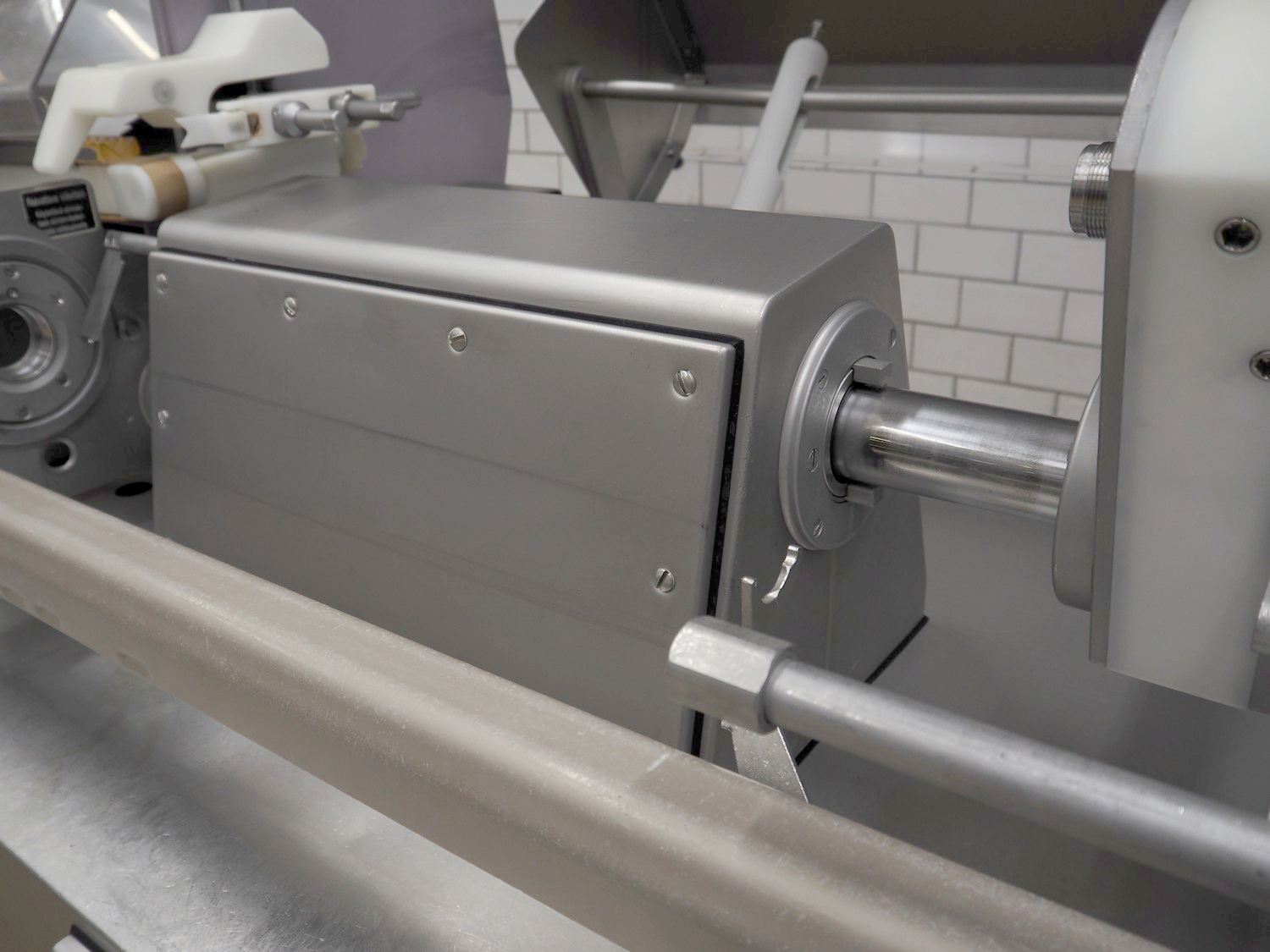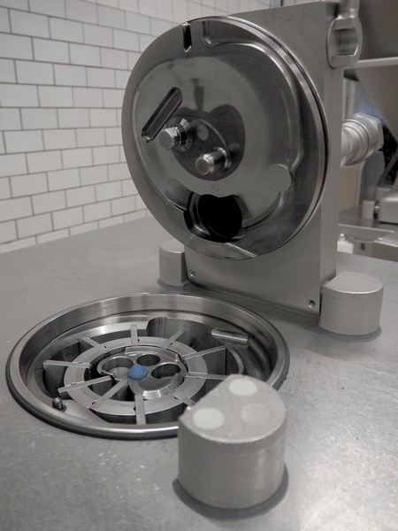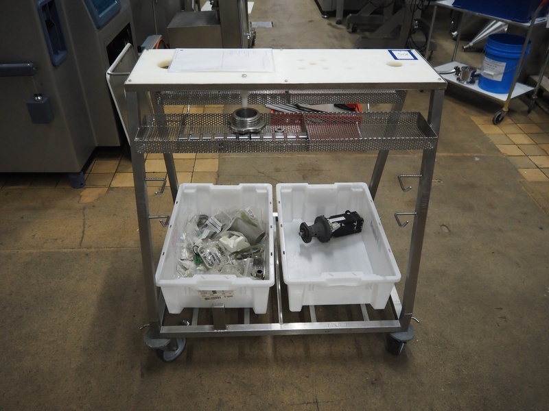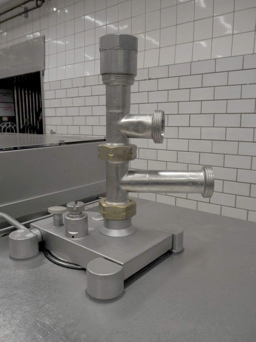 Handtmann mobile portioning and linking machine, type: 242-01, number: 501, year of construction: 2004, 400 V, 3 Ph, 50 Hz, 15 A, 10 kW, dimensions: 2600 mm x 880 mm x 1780 mm.