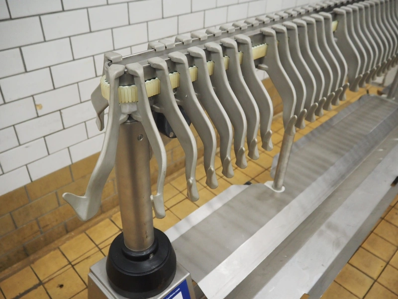 Handtmann mobile hanging machine: 220-16, number: 763, year of construction: 1999, dimensions: 2600 mm x 570 mm x 1400 mm.