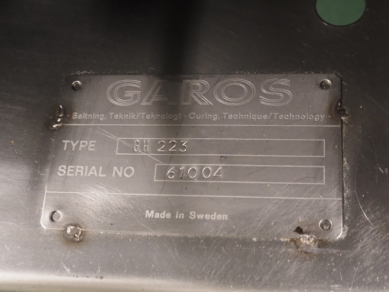 Garos mobile netting machine, type: GH 223, serial number: 61004, clearance filling pipe: 125 mm, total dimensions: 620 mm x 570 mm x 1600 mm.