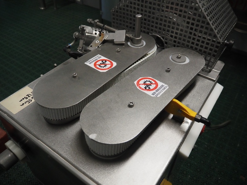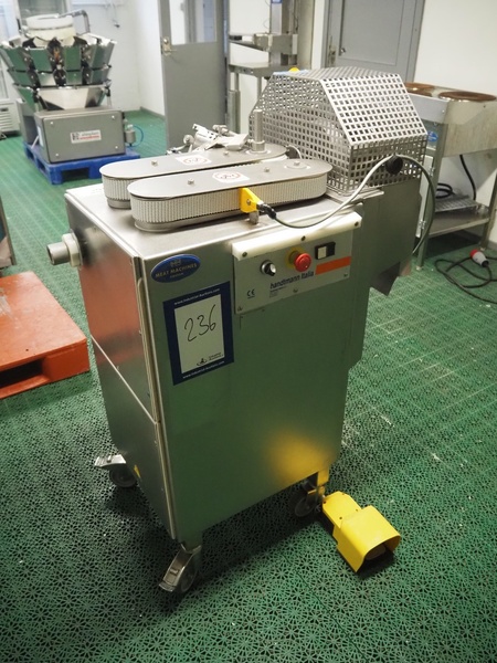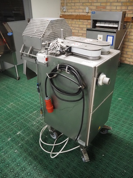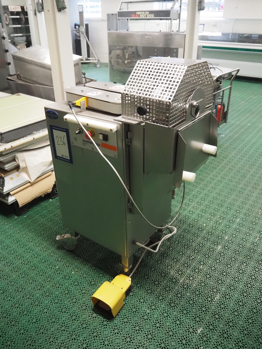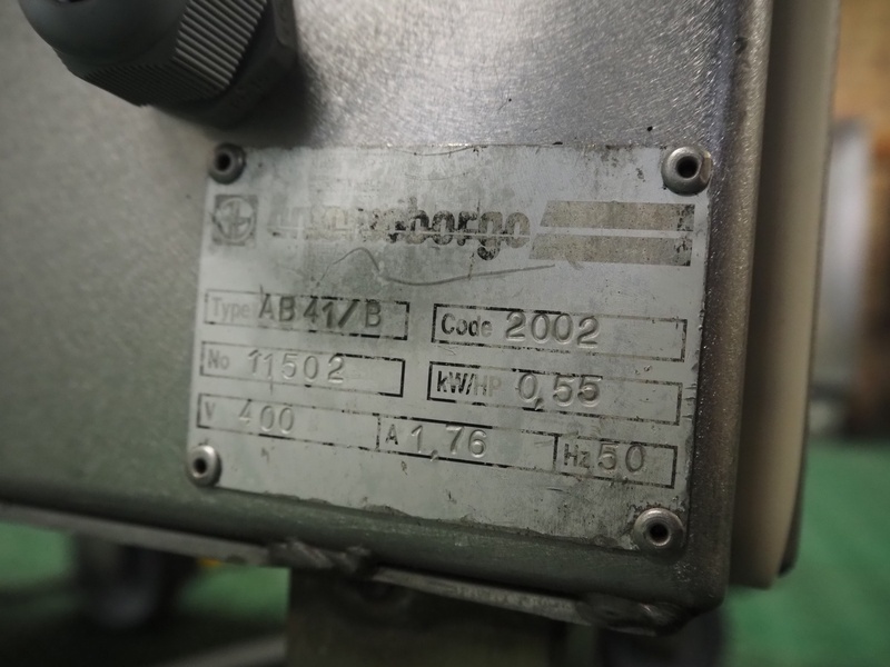 Handtmann mobile binding machine for small sausage, type: AB41/B, number: 11502, year of construction: 2002, 400 V, 50 Hz, 1.75 A, 0.55 kW, diameter: 55 mm, total dimensions: 800 mm x 600 mm x 1240 mm. Foot control.