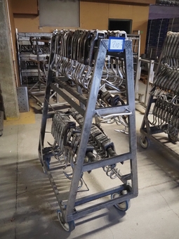 S/s trolley with large amount of meat hooks, dimensions trolley: 1150 mm x 650 mm x 1560 mm.€ 500,000 bids16/10/2025 15:30 -
