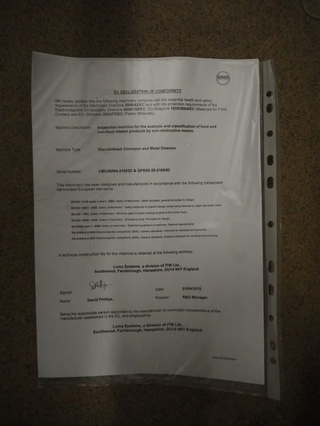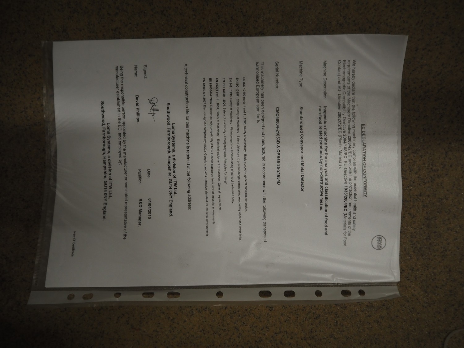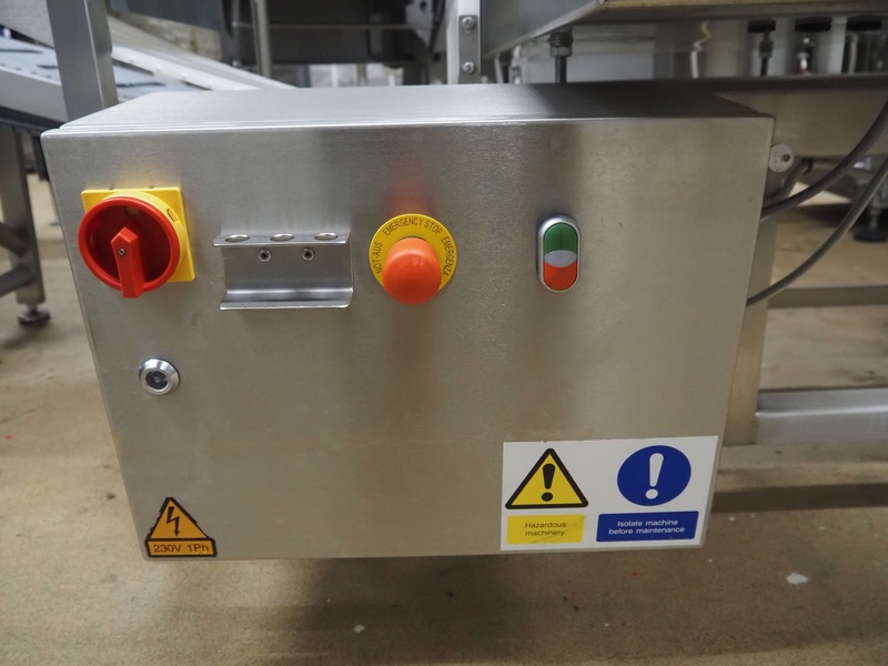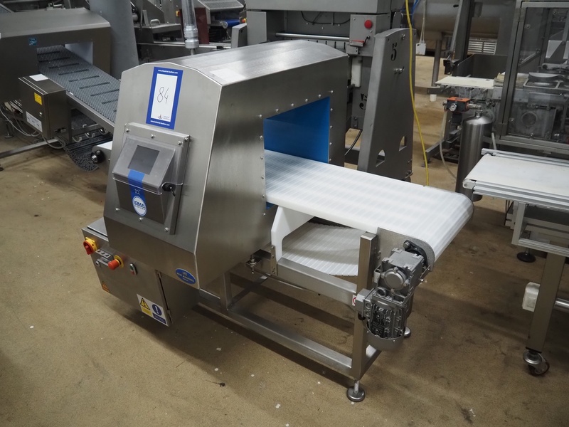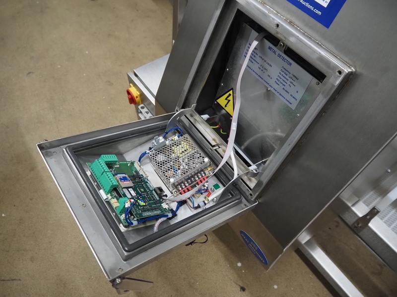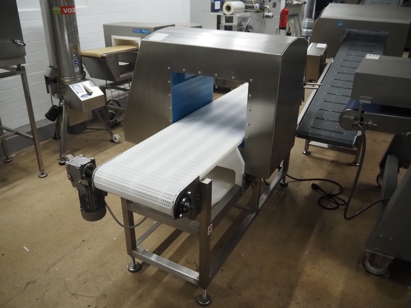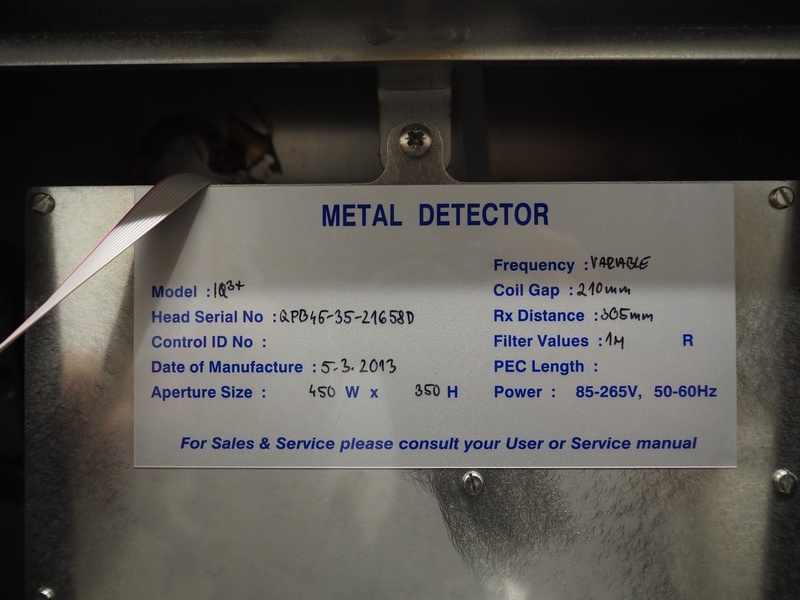 Loma Systems metal detector, model: IQ3, serial number: QPB45-35-21658D, year of construction: 2013, 110-240, 1 Ph, 50/60 Hz, 0/5-1.0 A, plastic mesh belt, belt width: 410 mm, clearance: 450 mm x 300 mm, total dimensions: 1800 mm x 1000 mm x 1300 mm.