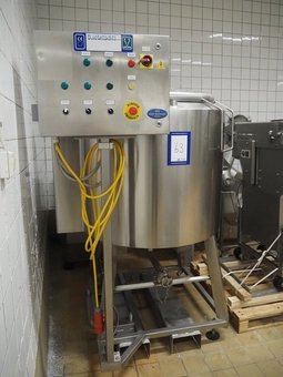 G. Mondini S.p.a. double jacketed mixing tank, inside dimensions: Ø 880 mm x 800 mm, total dimensions: 1200 mm x 1000 mm x 1960 mm.2 bidsLot is closed -
