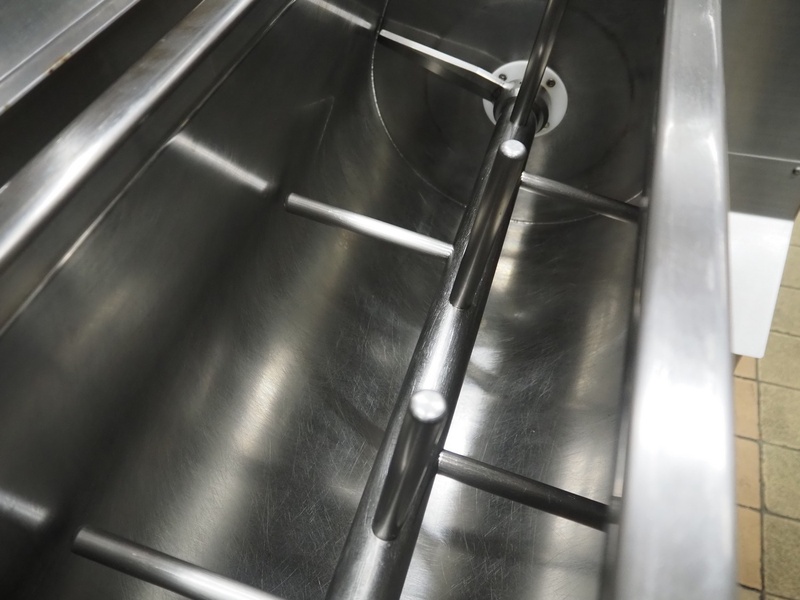 NN mixer, inside dimensions: 750 mm x 300 mm x 400 mm, total dimensions: 1700 mm x 650 mm x 1350 mm.