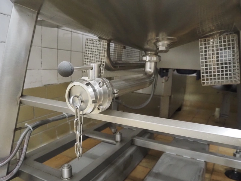 G. Mondini S.p.a. double jacketed mixing tank, inside dimensions: Ø 880 mm x 800 mm, total dimensions: 1200 mm x 1000 mm x 1960 mm.
